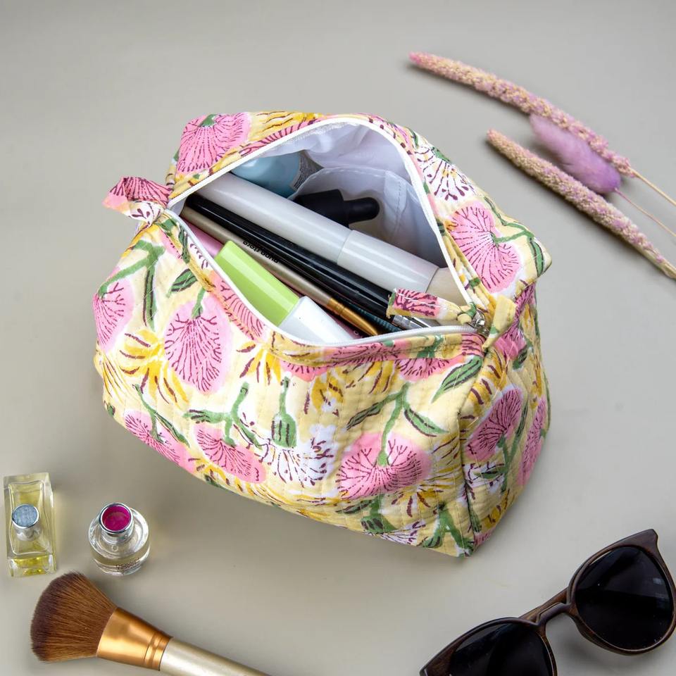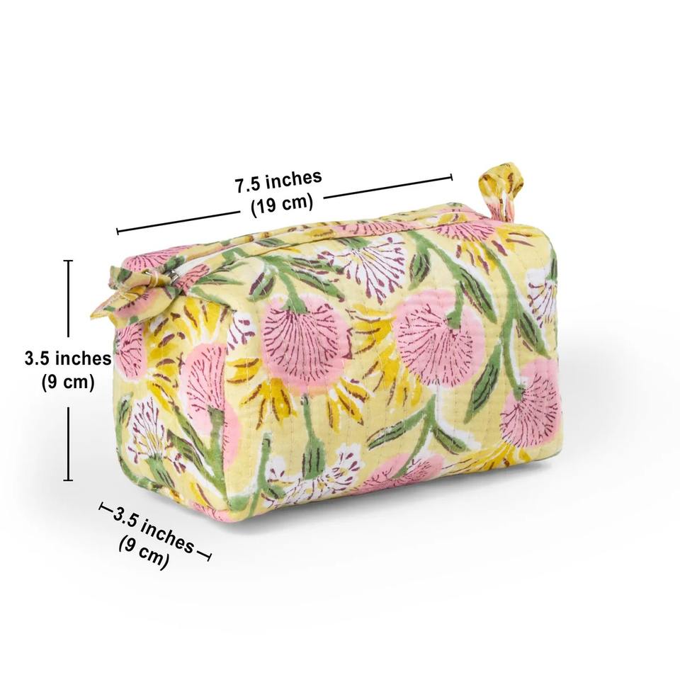 Handmade Vintage Cotton Eco-Friendly Floral Block Printed Zipper Closure Case Set of 3-Small Medium Large