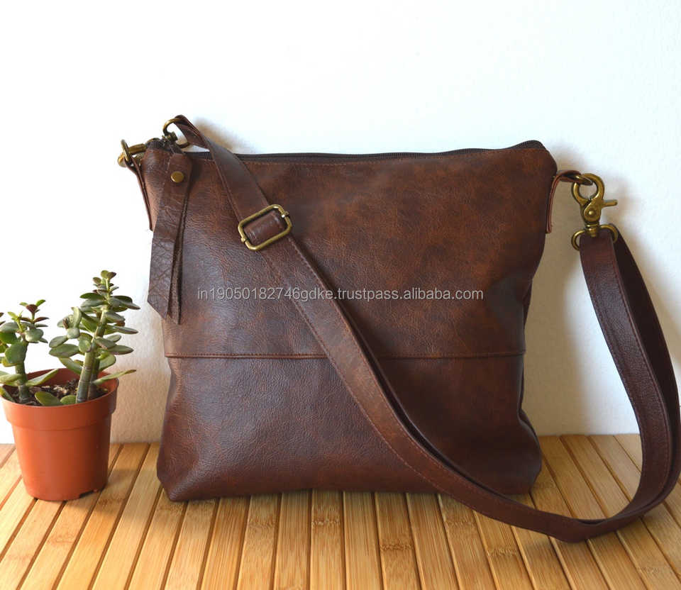 Handmade Vintage Crazy Horse Genuine Leather Unisex Messenger Satchel Custom Logo Crossbody Bag Zipper Durable Thread Portable