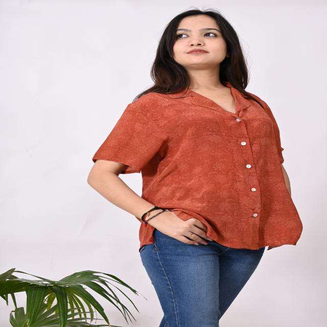 Handmade Vintage Crepe Silk Shirt for Women, Long Sleeve Sari-Inspired Satin Top, Indian Recycled Fabric Short Blouse