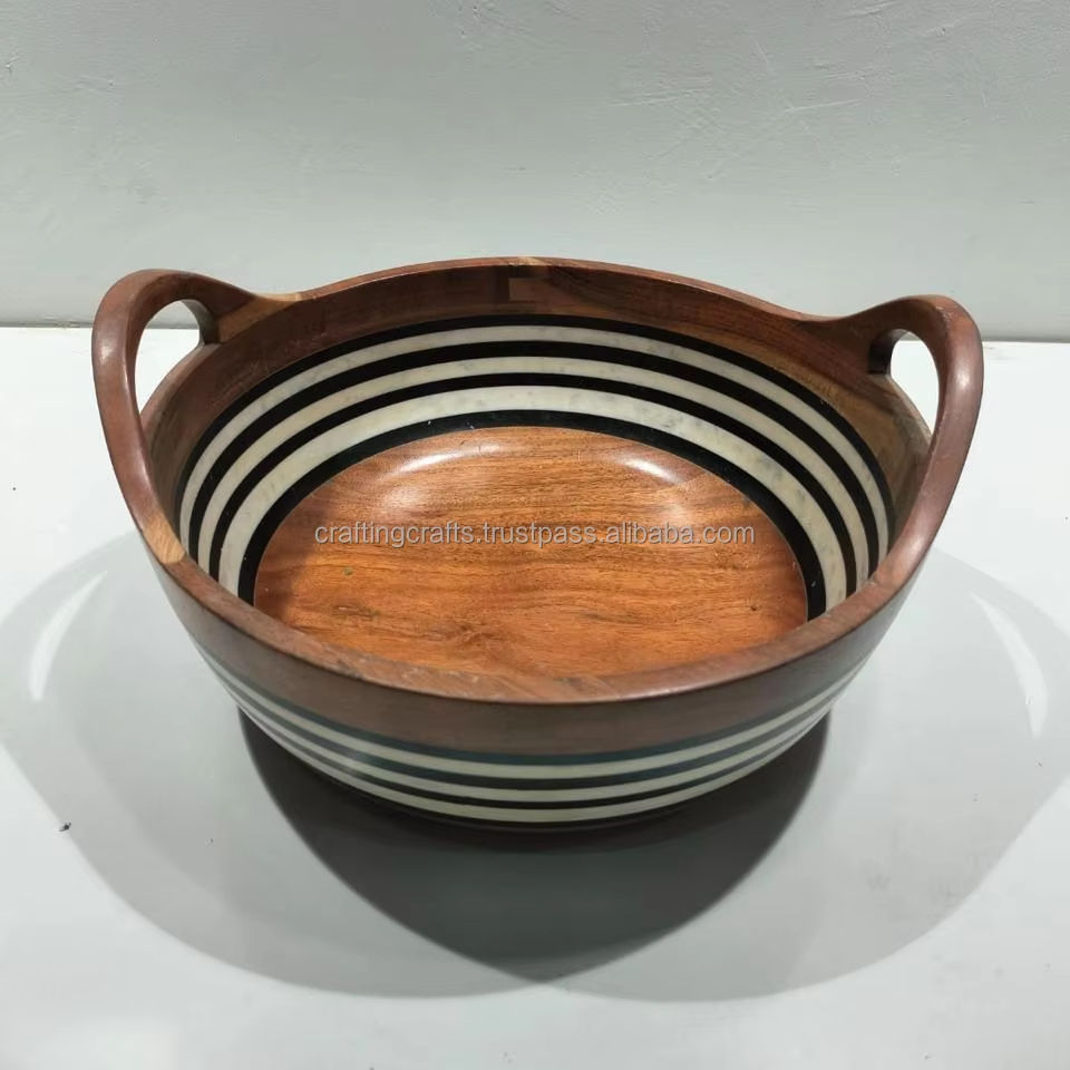 Handmade Vintage Eco-Friendly Decorative Wooden Salad Bowls with Custom Logo for Kitchen Party & Hotel Use Bulk Wholesale India