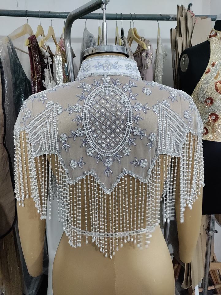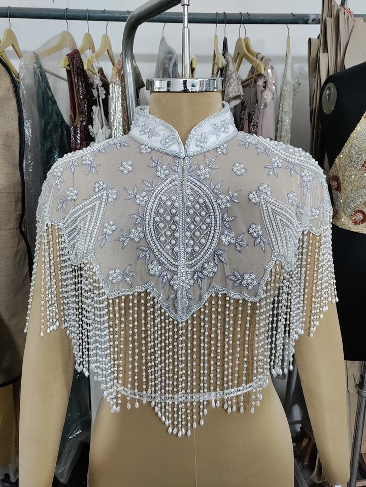 Handmade Vintage Flapper Party Fur Shawl Sequin Beaded Bolero Embroidery Cape Evening Bridal Cover Ups for Wedding Parties