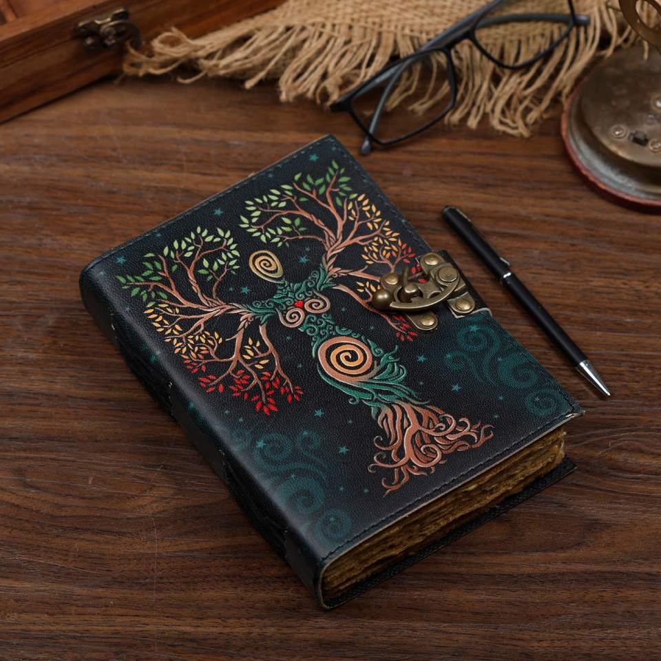 Handmade Vintage Genuine Leather Journal Notebook Soft Leather Bound Diary with Lock Travel Scrap Book Gift Paper Cover