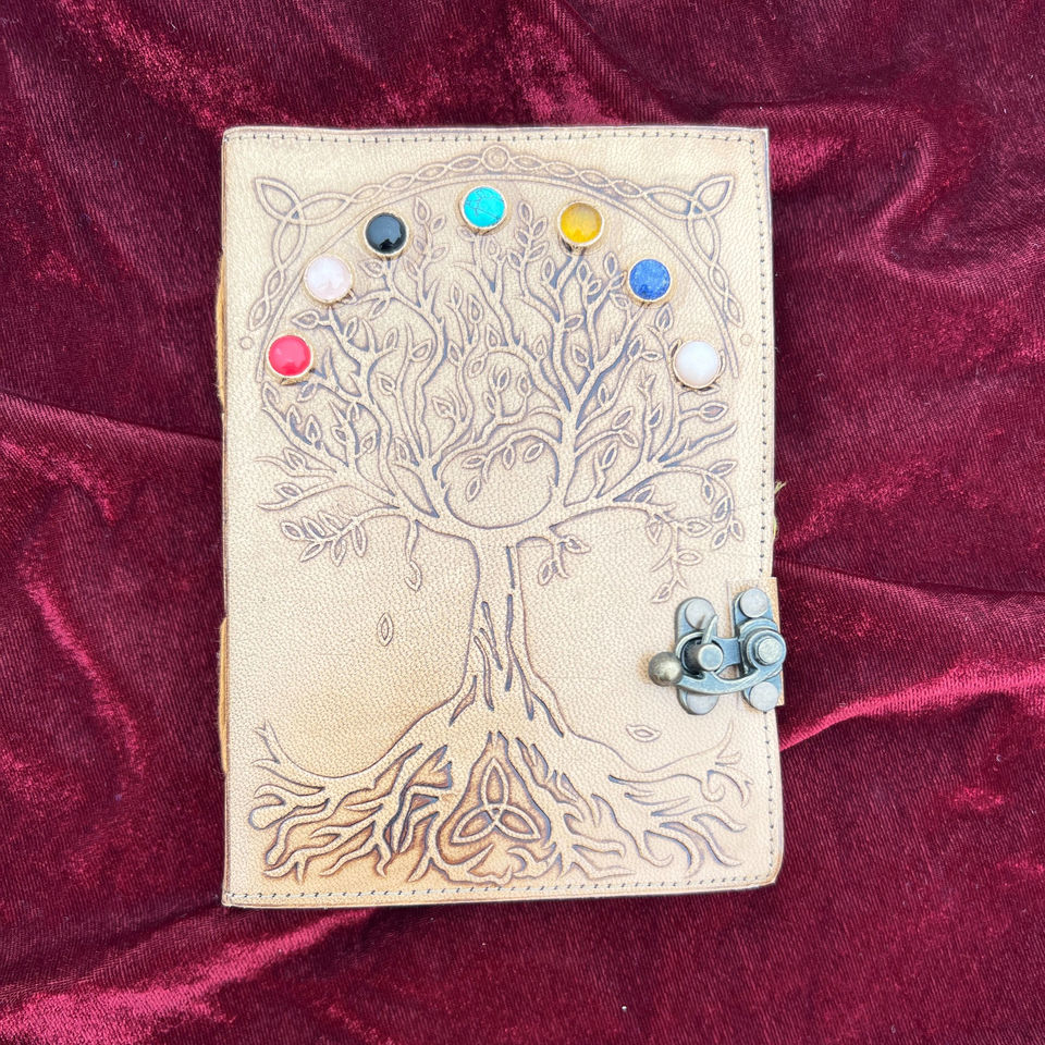 Handmade Vintage Genuine Leather Journal Tree Life Seven Stone Grimoire Notebook Mystical Spells for Witches
