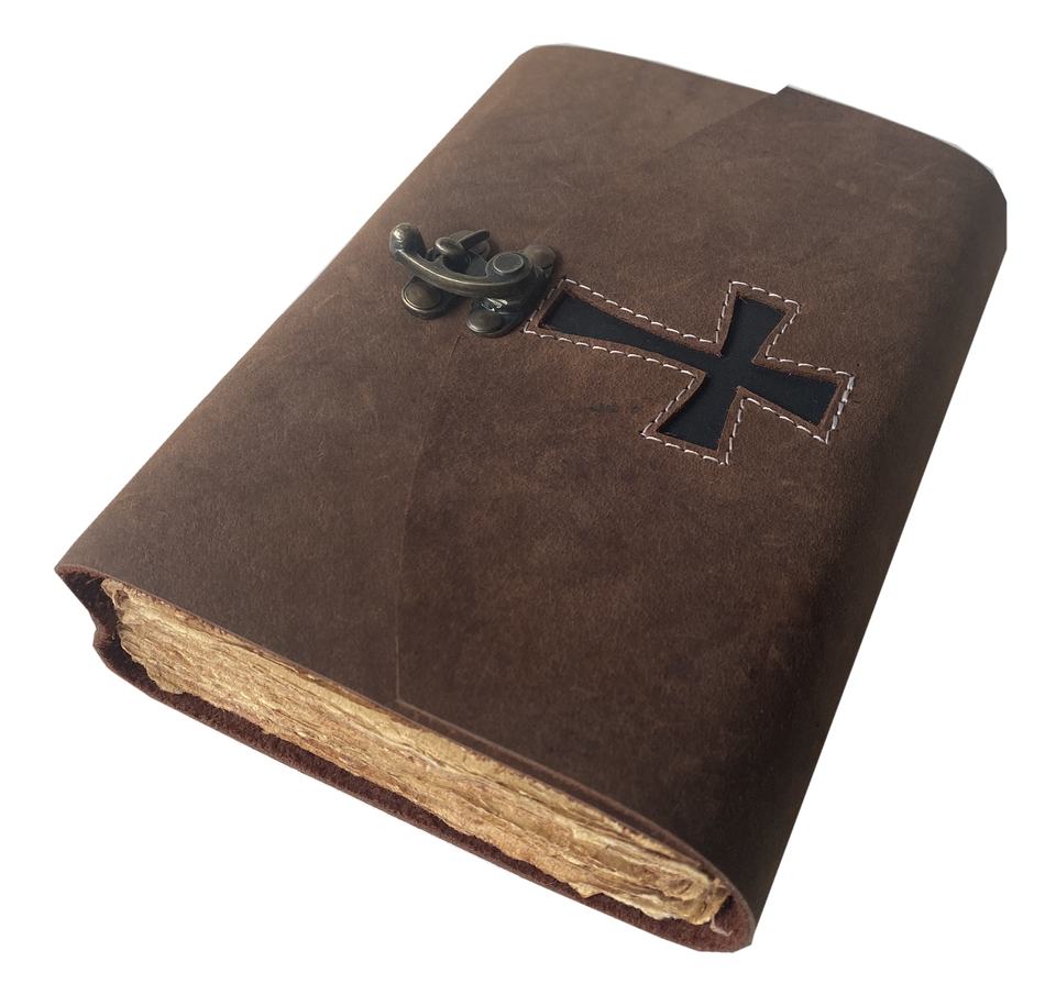 Handmade Vintage Genuine Leather Journal With Celtic Cross Designed Book Of Shadows Journal For Unisex Unlined Deckle Edge Paper