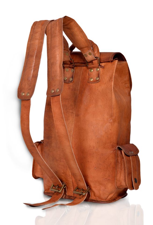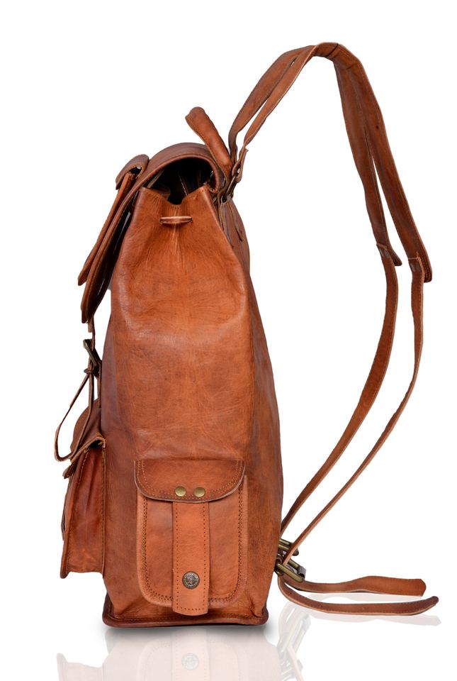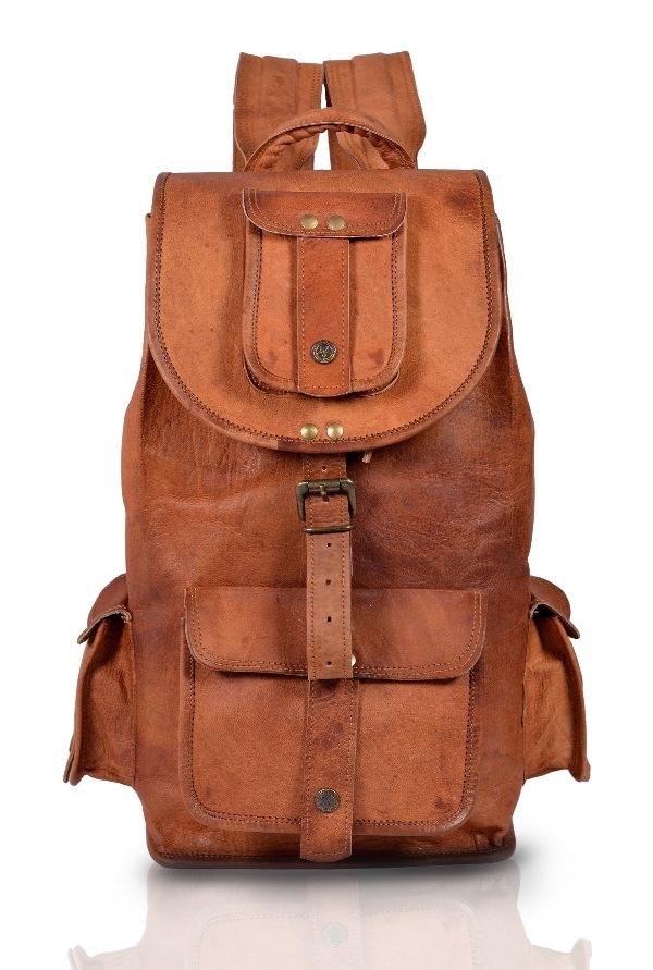 Handmade Vintage Genuine Leather Laptop Backpack with Waterproof Zipper Letter Pattern Design for Office School College Use