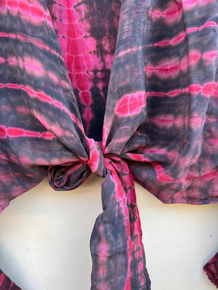 Handmade Vintage Indian Boho Beautiful Crepe Silk Crop Top Floral Pattern TIE Die Free Size Tank Sleeve Casual Party Lounge Wear