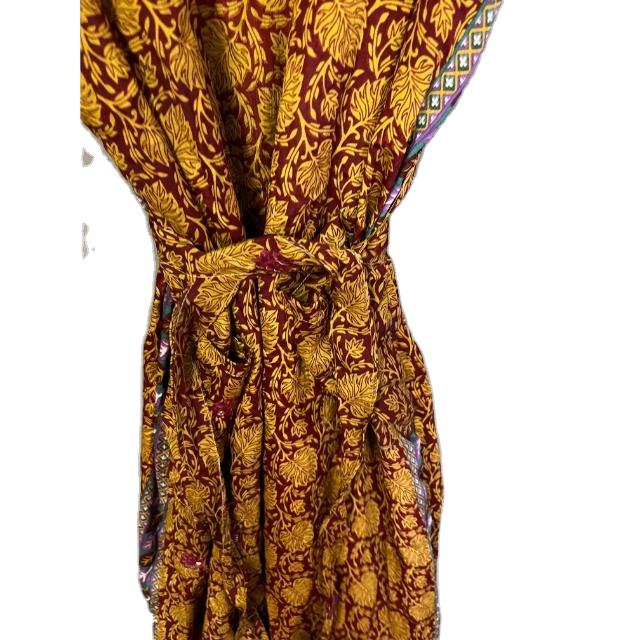 Handmade Vintage Indian Silk Kimono Thermal Christmas Pattern Bathrobe Gown Daily Life Beach Maxi Dress for Women Sleepwear