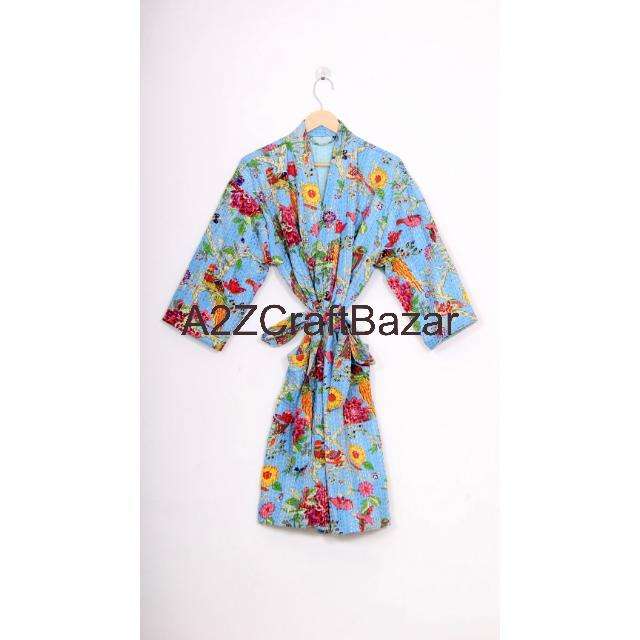 Handmade Vintage Kantha Short Kimono Robe 100% Cotton Luxury Floral Pattern Indian Quilt Coat Smooth Soft Winter Jacket Autumn