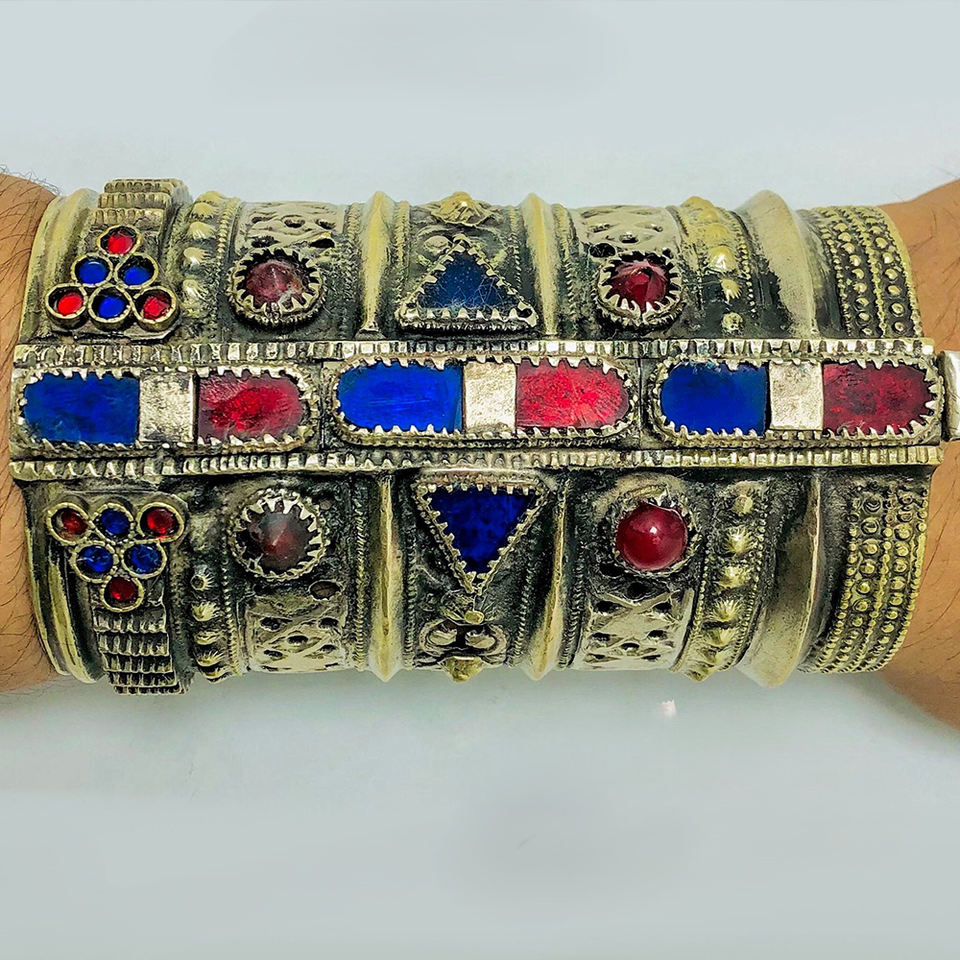 Handmade Vintage Kuchi Bridal Engagement Jewelry Set Stainless Steel Antique Gold Rhodium Plated Wedding Party Muslim Women's