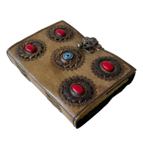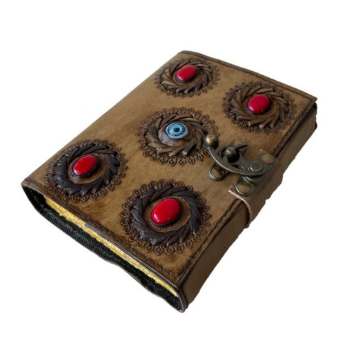 Leather Journal with Four Stones & Eye Charcoal Bound Travel Diary