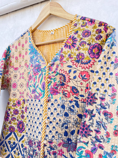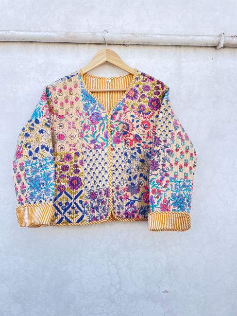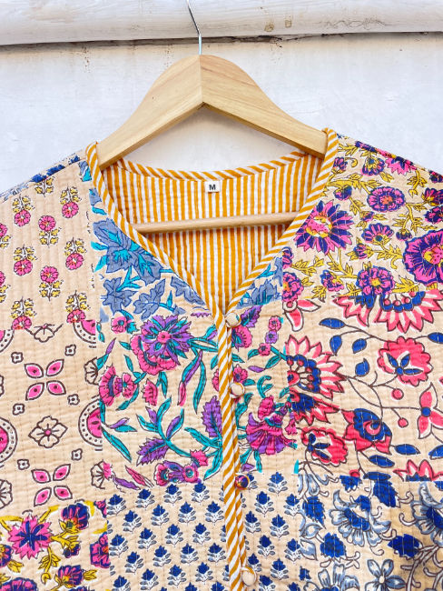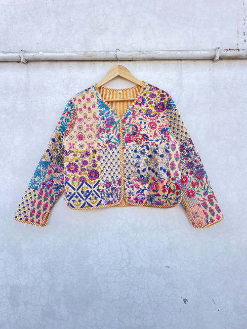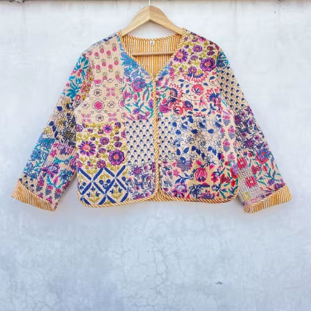 Handmade Vintage Peach Patchwork Cotton Quilted Bomber Jacket Women's Boho Reversible Breathable Unisex Autumn Winter New Style