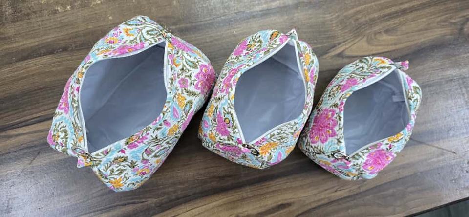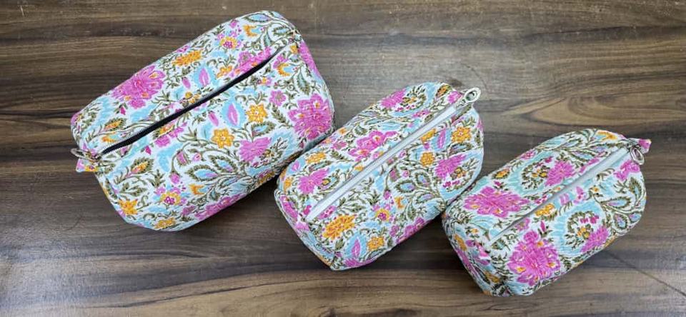 Handmade Vintage Quilted Multi Cotton Case Zipper Closure Durable Water Resistant Eco-Friendly Travel Makeup Organizer