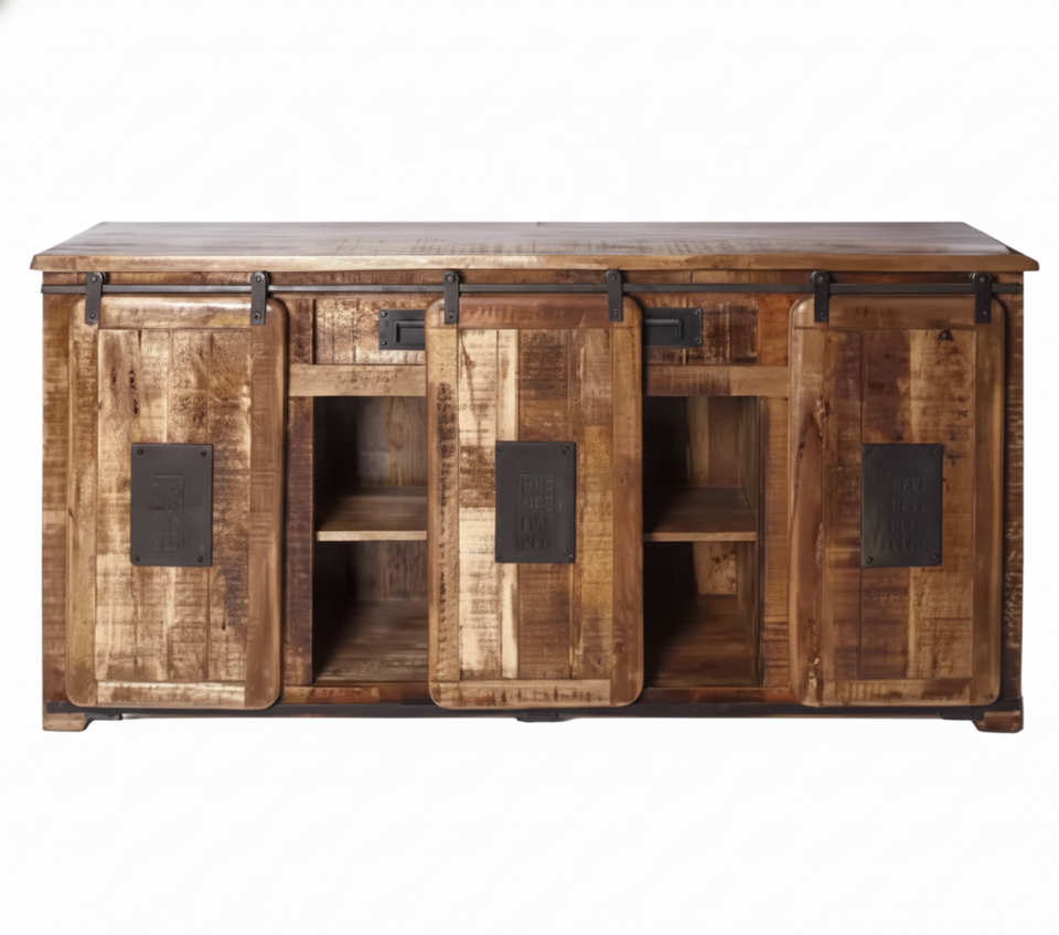 Handmade Vintage Sliding Door Storage Cabinet Teak Metal Industrial Modern Design for Bedroom Dining Farmhouse Hotel Hall Use