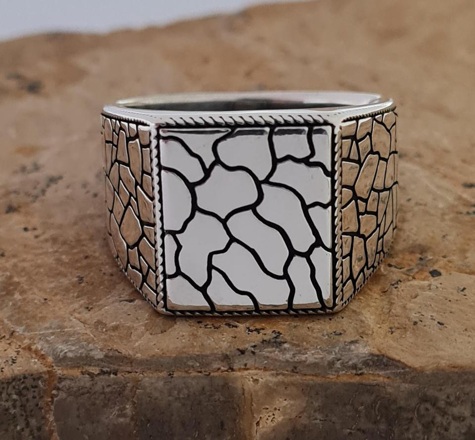 Ring Design:Square Rock Patterned