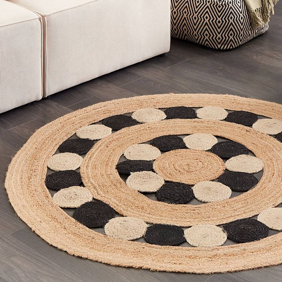 Handmade Vintage Style Black Beige Rim Woven Jute Rug 100% Natural Materials for Home Livingroom Bedroom Kitchen
