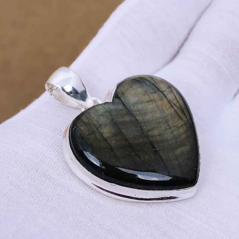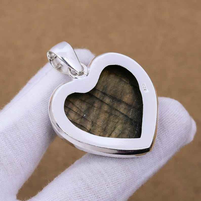 Handmade Vintage Style Heart Pendant Sterling Silver 925 Gold Plating Unique Labradorite Gemstone Jewelry for Engagement