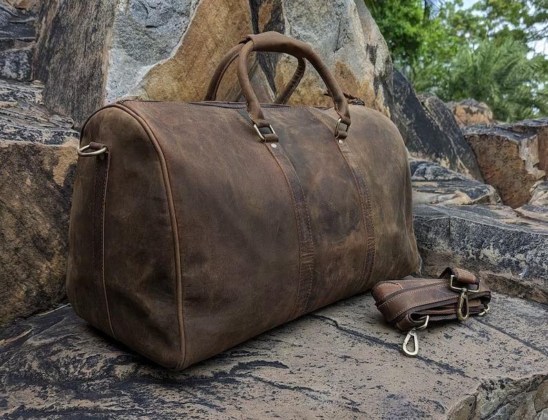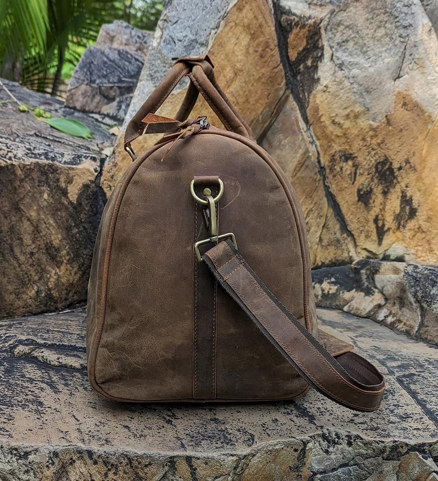 Handmade Vintage Style Leather Duffle Bag Women Weekender Gym Vacation Satchel Embroidered Button Decoration Shoder Messenger