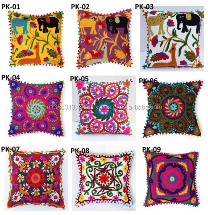 Handmade Eco-Friendly Customizable Vintage 16x16'' Cotton Suzani Cushion Cover Embroidered Indian Pillow Case Hotel Square Home