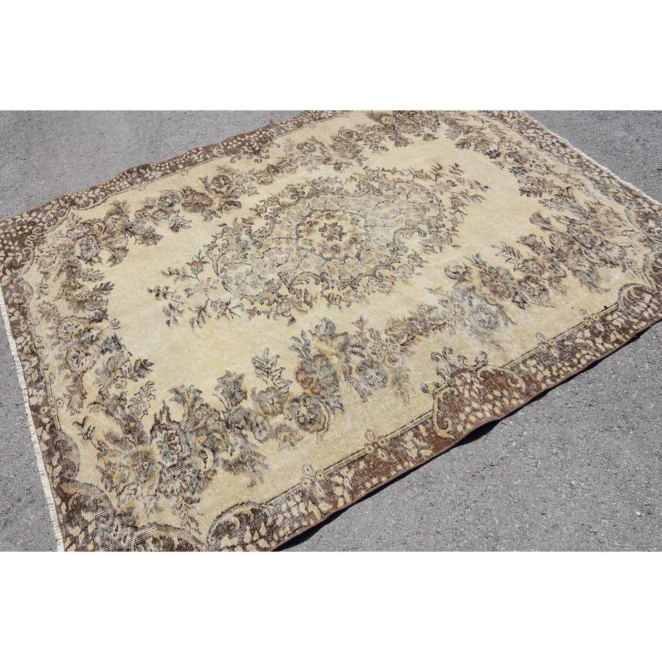 Handmade Vintage Wool Rug 5.5 X 7.4 ft Beige Brown Boho Rectangular Patchwork Design for Entryway Bed Hallway 5mm Plush Latex