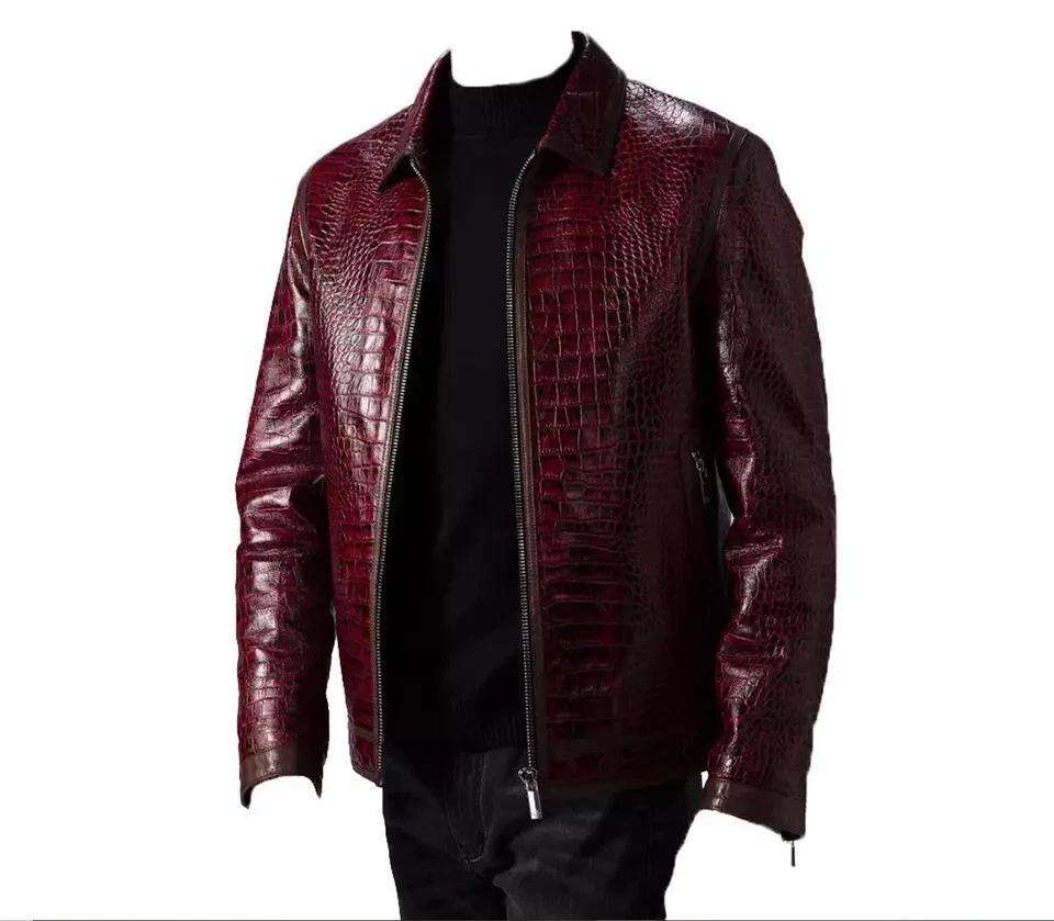 Handmade Vintage for Crocodile Skin Genuine Leather Jacket for Men Custom Design Zipper Handmade Plain Dyed Outerwear for Winter