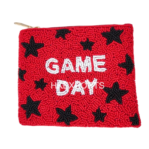 Handmade WOO PIG Gameday Beaded Coin Purse for Women Custom Team Spirit Beadwork Zipper Closure Pouch Polyester Lining MOQ 3pcs