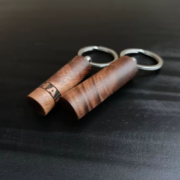 Handmade Walnut Keychain: Rustic Wooden Key Ring