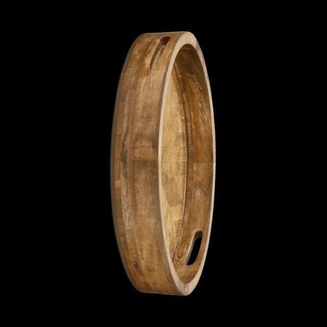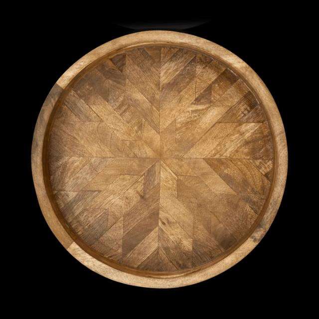 Walnut Wood Round Disposable Serving Tray with Customized Color and Engraved Design for Wedding Hotel Restaurant Party Use