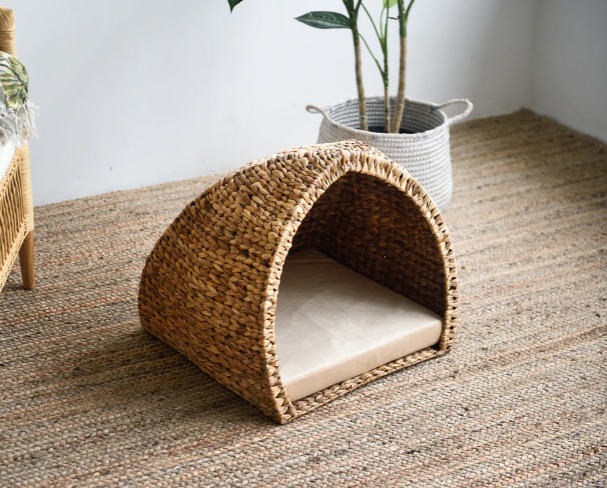 Handmade Water Hyacinth Pet Bed New Arrival Small Dogs/Cats Indoor Use Soft Cushion Natural Woven Dog House