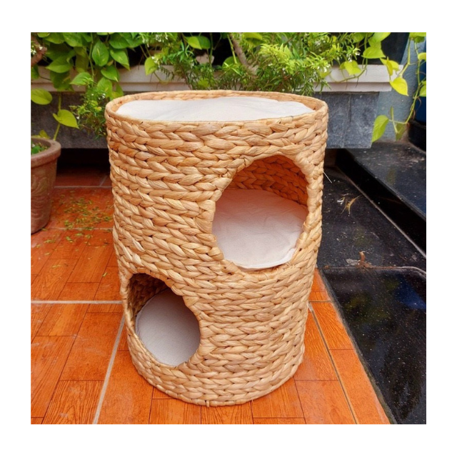 Handmade Water Hyacinth Pet Bed for Dog Cat Small Animal Sleeping Nest Eco-Friendly Woven Grass Basket House Furniture