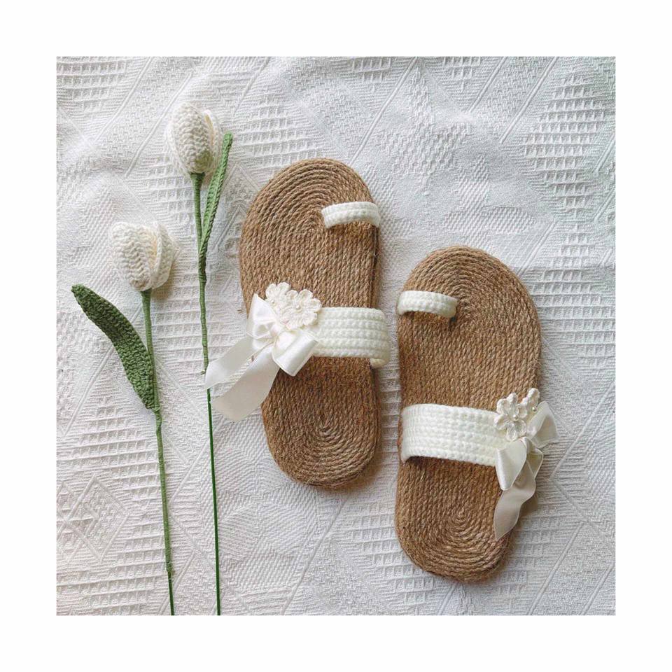 Handmade Water Hyacinth Slippers for Indoor Footwear Straw Sandals/Eco-Friendly Best Summer Sales 2025 Women Beachwear Flip Flop