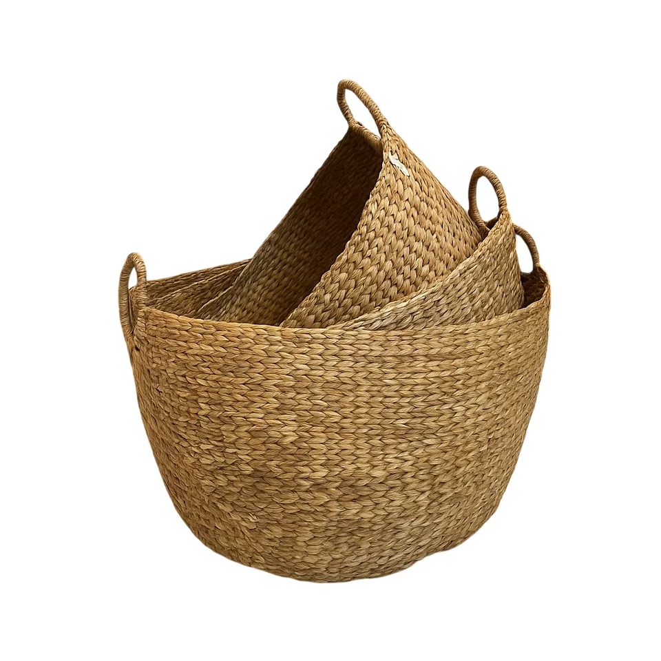 Handmade Water Hyacinth Woven Storage Baskets Set of 3 | Laundry & Home Organization