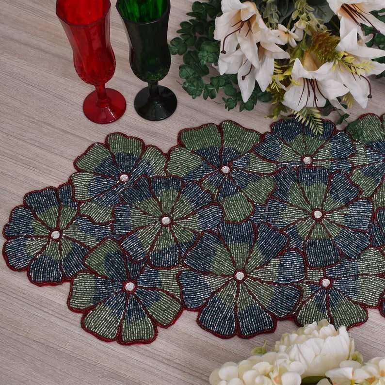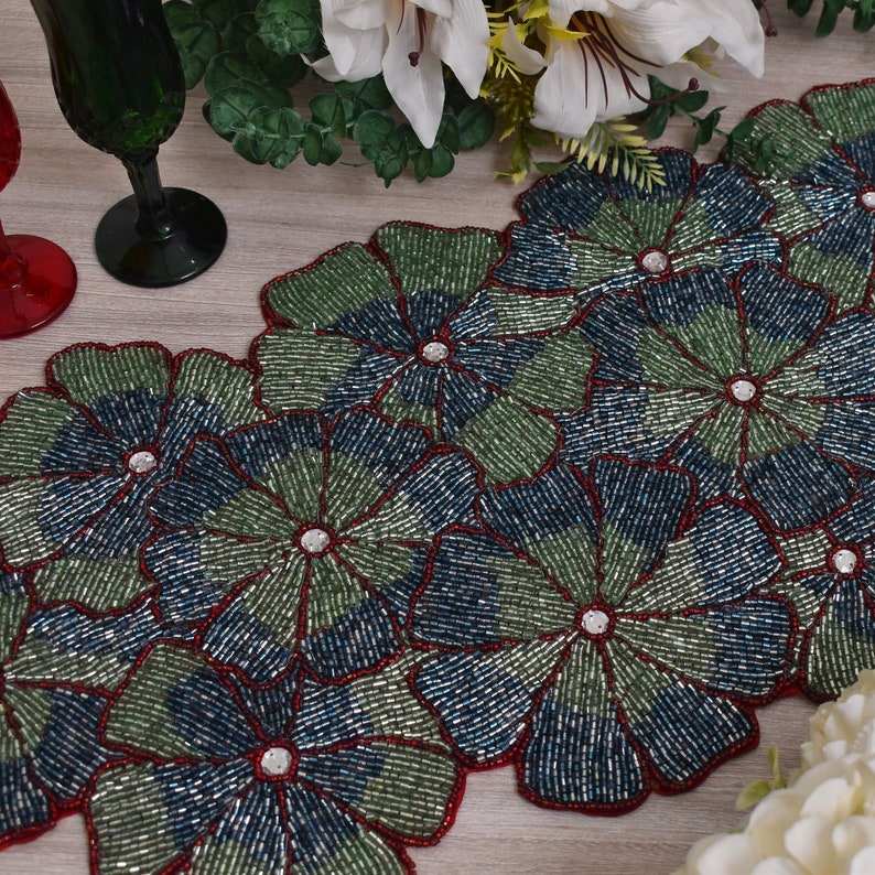 Handmade Wedding Beaded Table Runner – White & Gold Floral Decor
