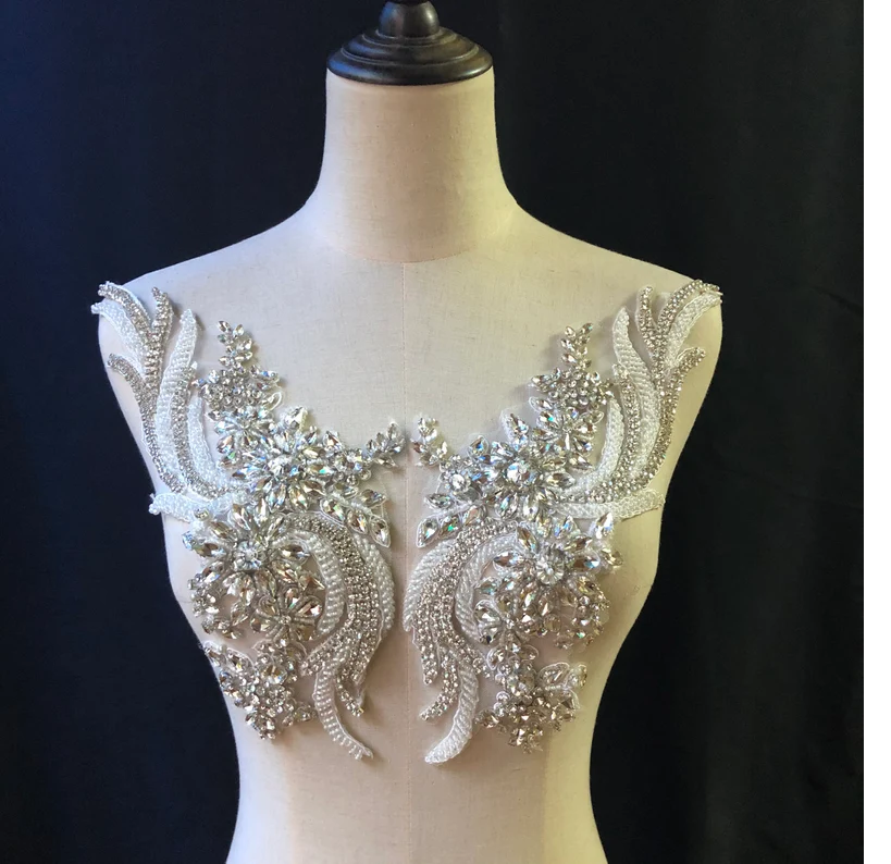 Handmade Wedding Dresses 3D Flower Shape Rhinestone Crystal Beaded Applique Sewing Lace Patch Beautiful Bling Bling Fabric