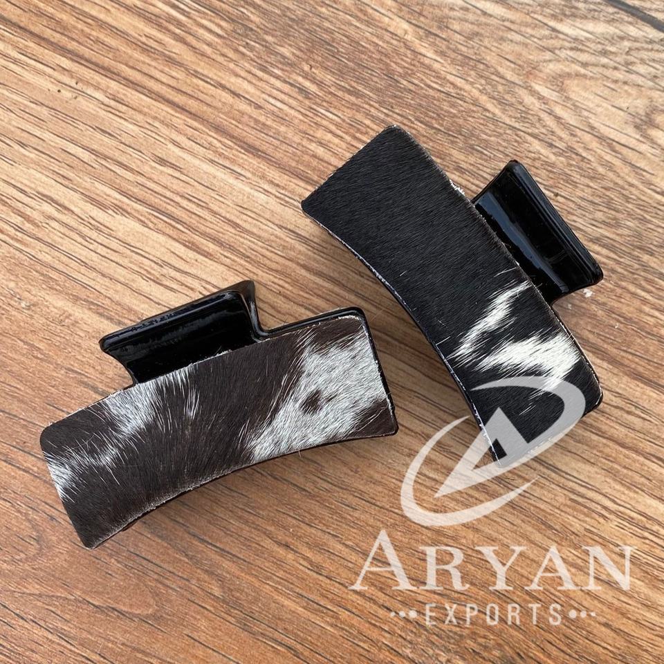 Handmade Western Hair on Cowhide Leather Claw Clips Personalized Hair Clips Hair on Hide Genuine Leather Accessories for Women's