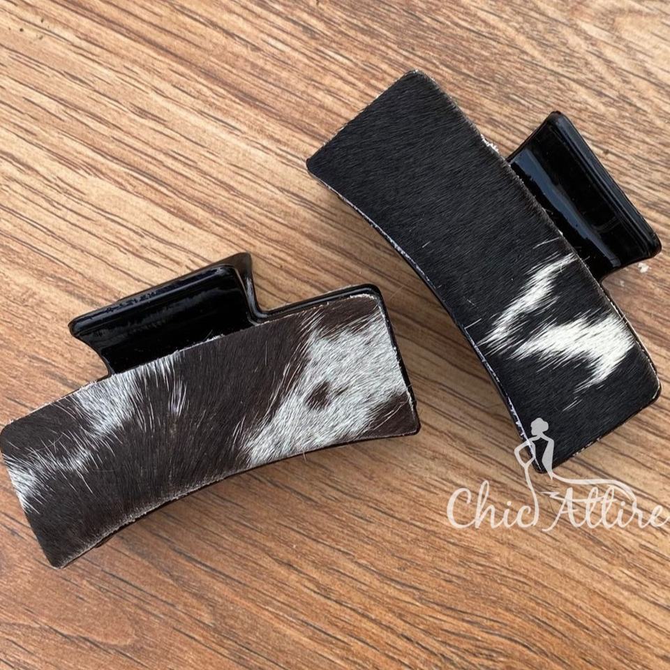 Handmade Western Hair on Cowhide Leather Claw Clips Personalized Hair Clips Hair on Hide Genuine Leather Accessories for Women's