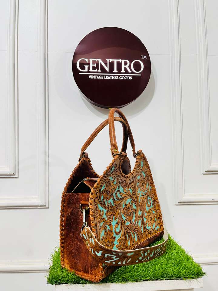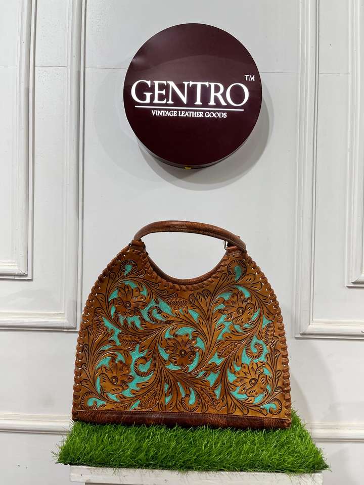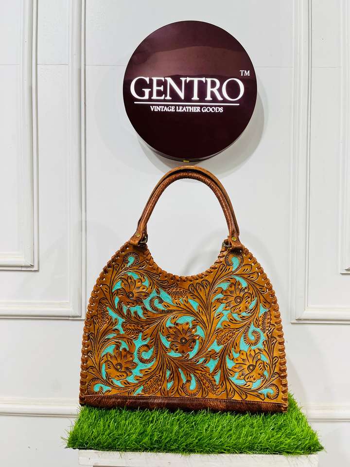 Handmade Western Tooling Carving Leather Handbag Tote Bag for Women Cowgirl Style