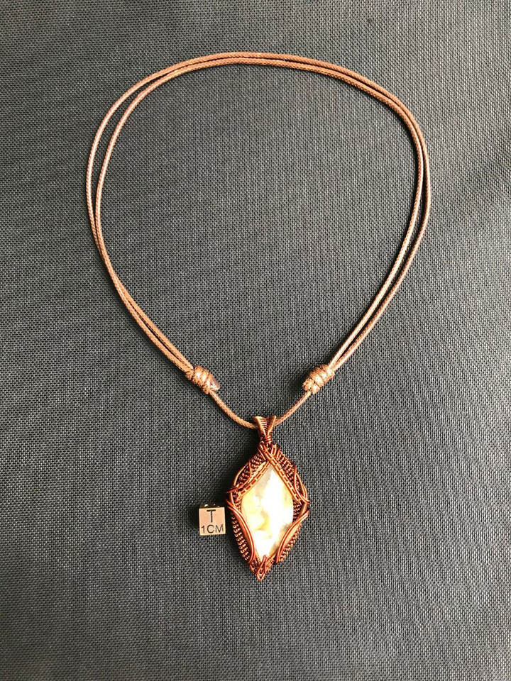 Handmade White Agate Stone Pendant Antique Copper Wire Wrapped Natural Gemstone Artisan Jewelry