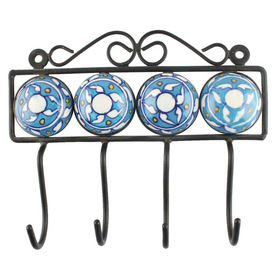 Handmade White Ceramic Tile Floral Utility Coat Wall Hooks Wall Holders Hanging Hangers Durable Indian Craft Wholesale