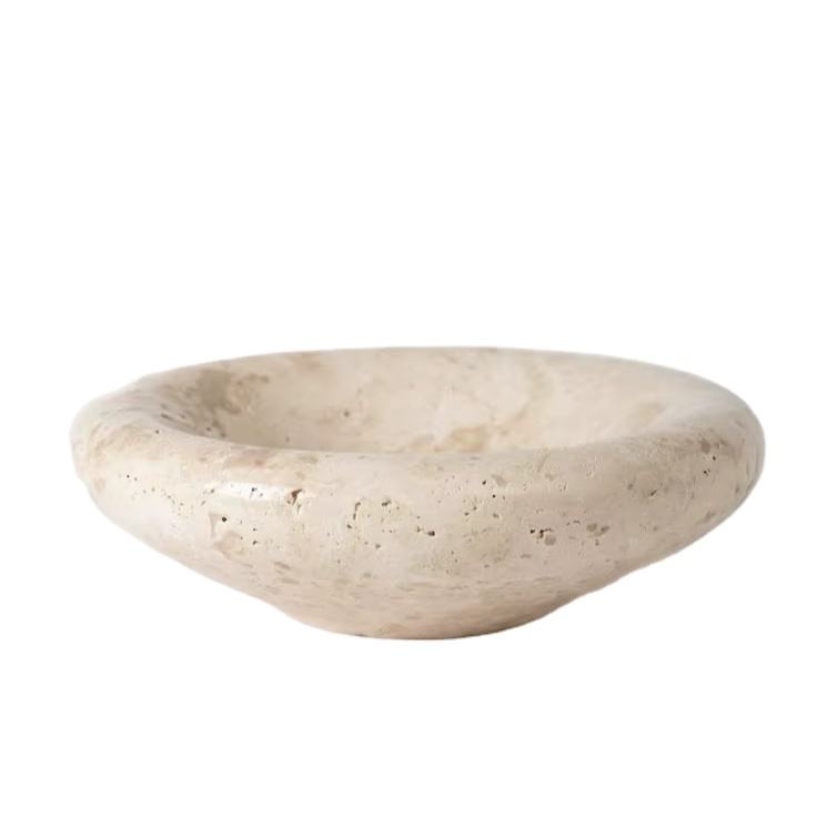 Handmade White Marble Decorative Bowl Natural Stone Shallow Tray Heat Resistant Eco-Friendly Elegant Home Decor Centerpiece