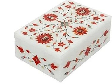 Handcrafted Marble Jewellery Box with Brass Inlay Work