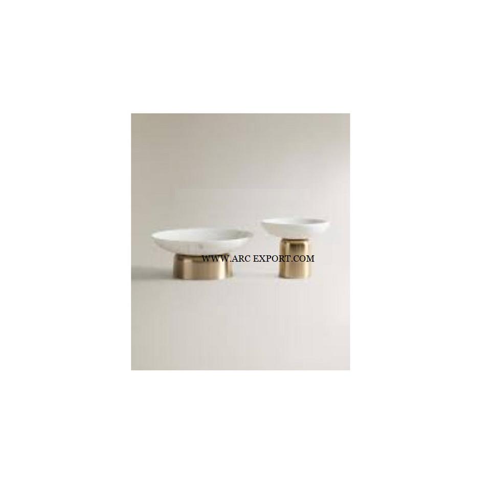 Handmade White Marble Round Kitchen Mixing Bowls With Exclusive Quality Gold Plated Metal Base Hotel Table Centerpiece Food Bowl