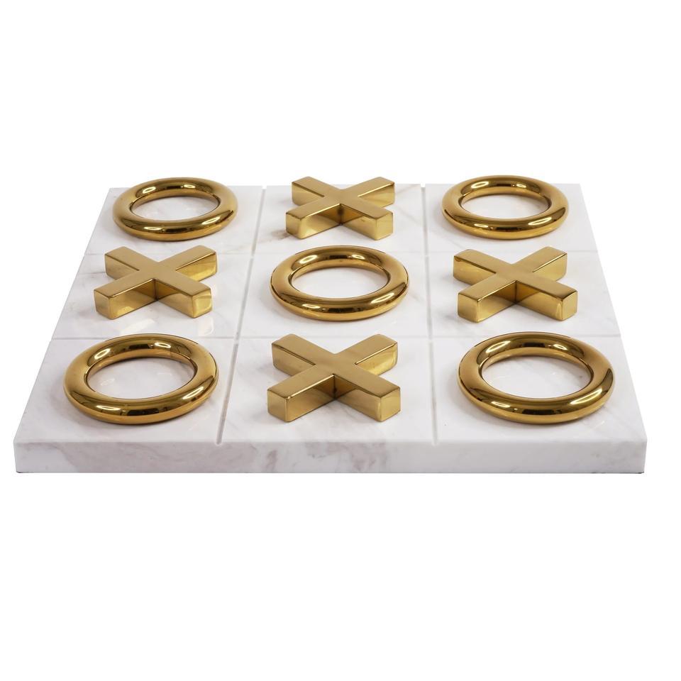 Handmade White Marble Tic Tac Toe Indoor Game Perfect for Kids and Family Board Games With Golden Symbol Sets