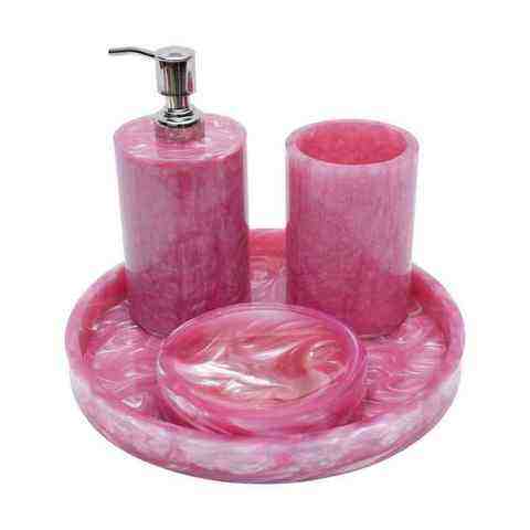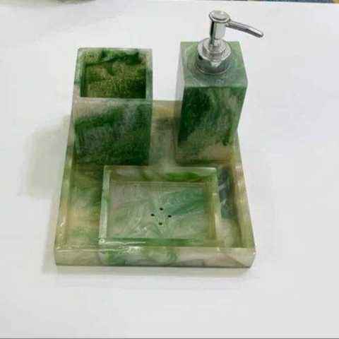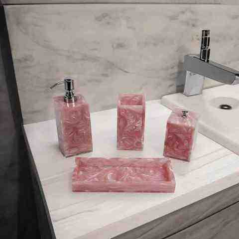 Handmade White Resin Bathroom Storage Accessories Stylish Four-Piece Set Easy to Clean Rectangle Shape