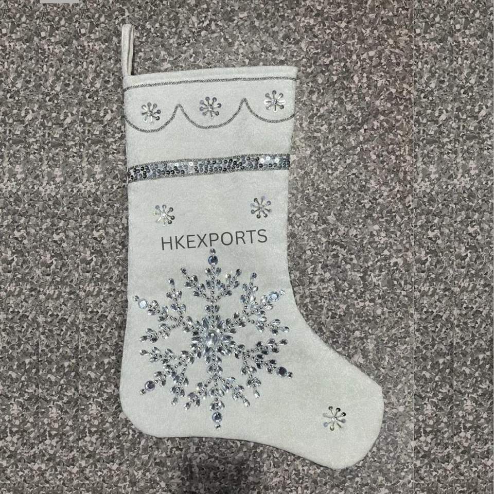 Handmade White and Gold Christmas Stockings with Beaded Accents Elegant Holiday Stockings for Luxury Festive Home Decor