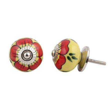 Handmade Wholesale Ceramic Knobs Red Yellow Floral Cabinet Knob Door Handles Hardware Manufacturer Drawer Pulls Bulk Lot