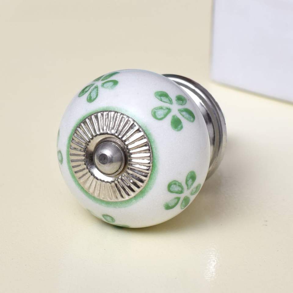 Handmade Wholesale Contemporary Ceramic Knobs Green Floral White Kitchen Cabinet Door Handles Hardware Drawer Pulls Bulk Lot