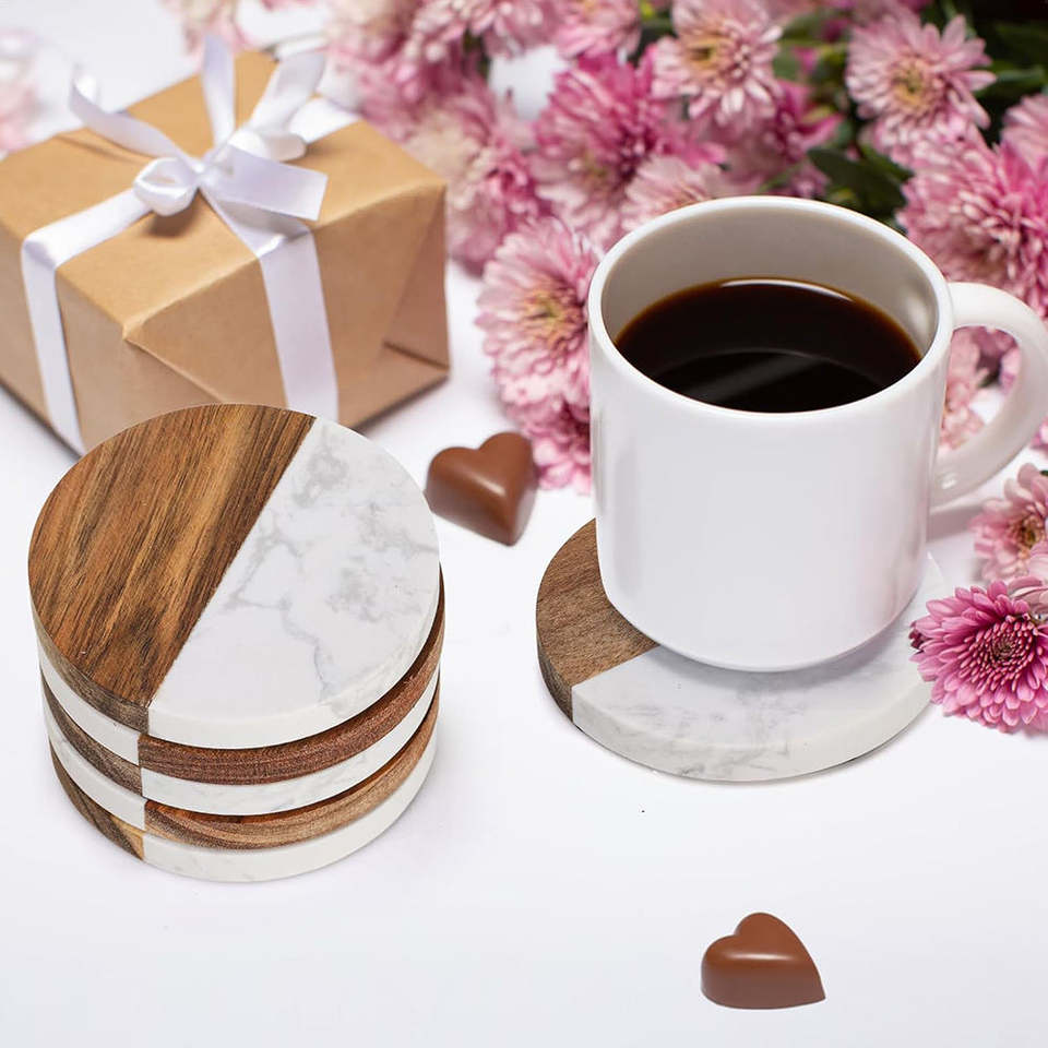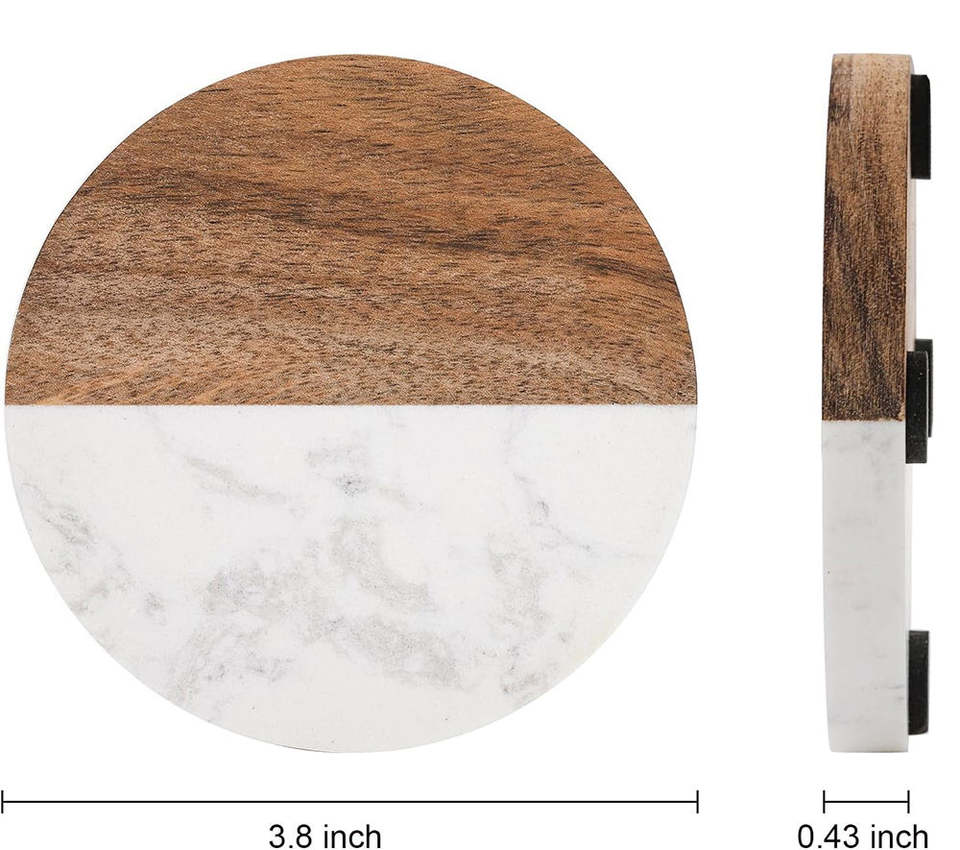 Handmade Wholesale decorative Natural wooden marble coaster wooden coasters white black wooden marble coaster