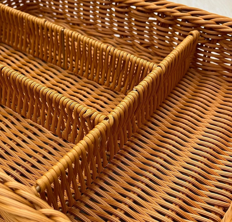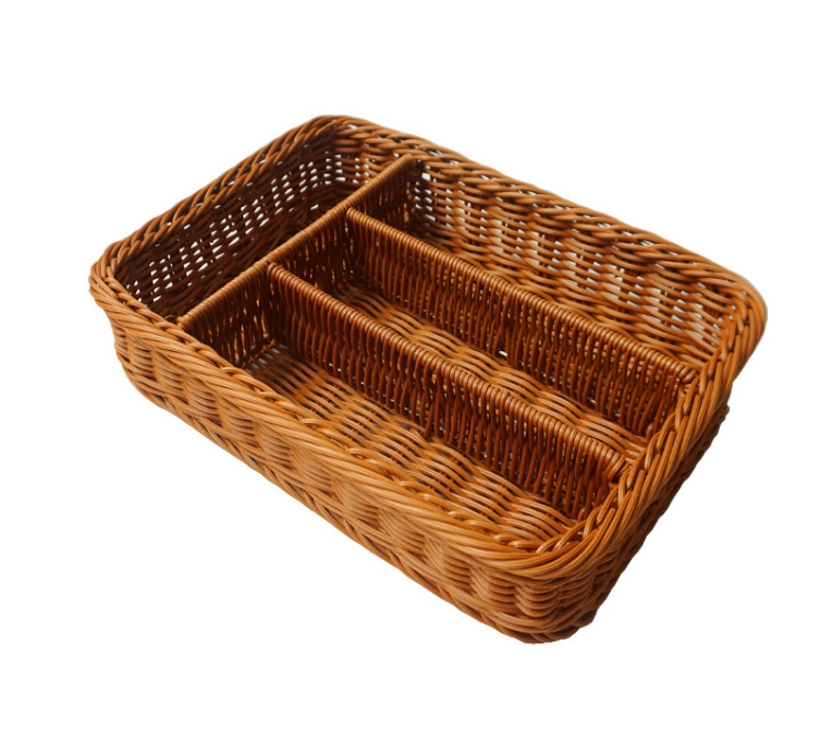 Handmade Wicker Cutlery Organizer Tray Multi Compartment Rattan Storage Basket for Kitchen Drawer Tabletop From Vietnam