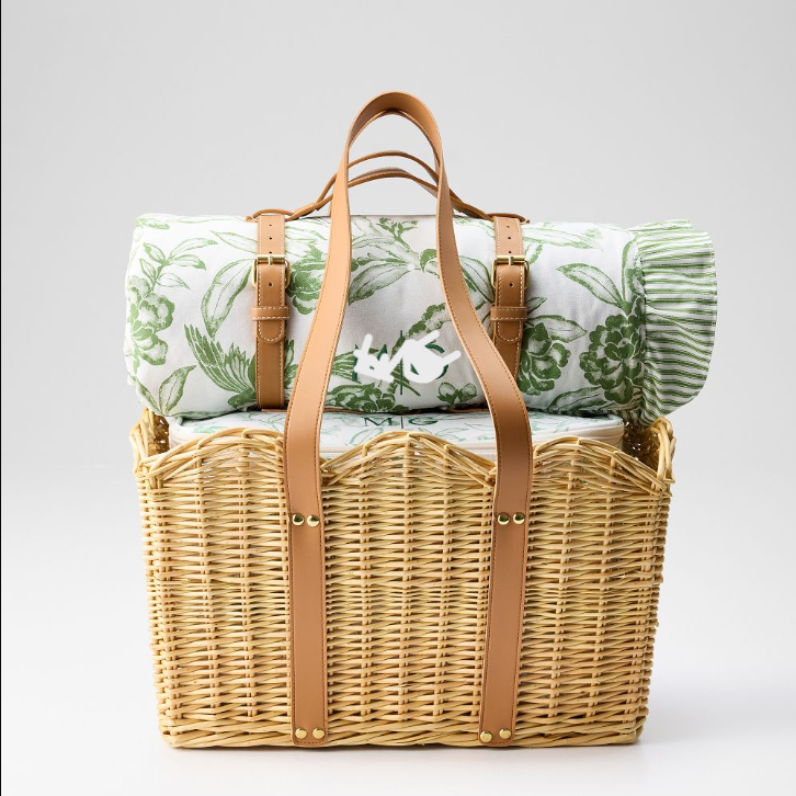 Handmade Wicker Picnic Basket Handwoven Stylish Sustainable Natural Material Eco-Friendly Picnic Hamper for Family