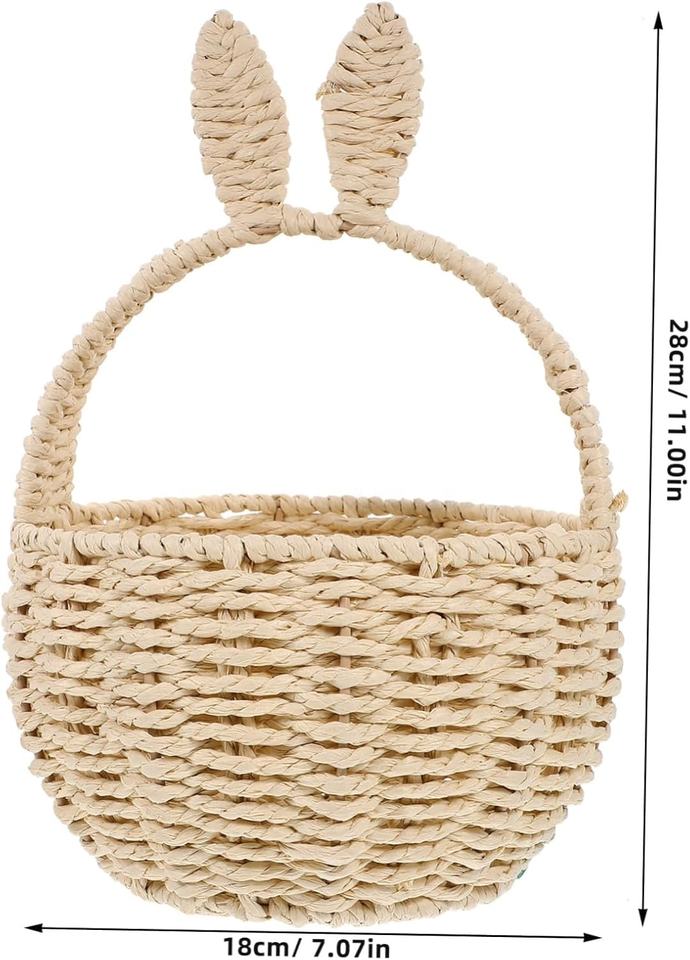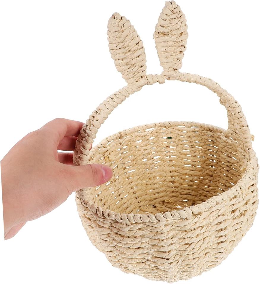 Handmade Wicker Rabbit Easter Basket with Handle | Decorative Woven Straw Flower Pot | Cute Bunny Gift Basket for Kids Party